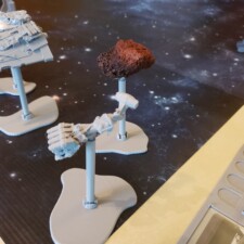 For the debris fields, it was a bit more complex. I made two pieces, one a CR90 Corvette, and one a Gladiator Star Destroyer. Both suffered battle damage thanks to a wood burning tool melting the 3d printed plastic. In the case of the Gladiator, I fully separated a section, and then re-attached with a short bit of plastic wire. Although both could likely use a bit of paint, the models work very well as is.