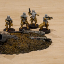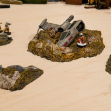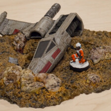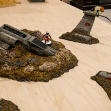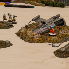 My second set of recently painted terrain is the Crashed X-Wing set, a more recent release. The model was painted similarly, with hand-painting on the X-Wing and R2 droid using base paints, then highlighted with contrasts. My home made dark wash ties all the pieces together again, working well for the size of the model.