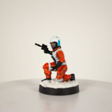 The pilot was previously painted, using a collection of contrast paints alone. Not entirely happy with the face (it ended up with excessive shadowing), but it does really stand out against the rest of the terrain.